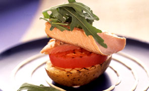 Servieren Sie den Lachs mit Salzkartoffeln und einer der