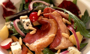 Mit in dünne Ringe geschnittener Zwiebel und Balsamicososse servieren.